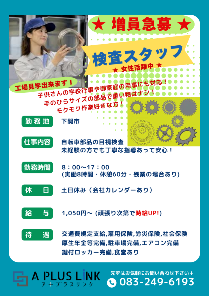 【増員急募】★ 軽い部品の検査スタッフ ★