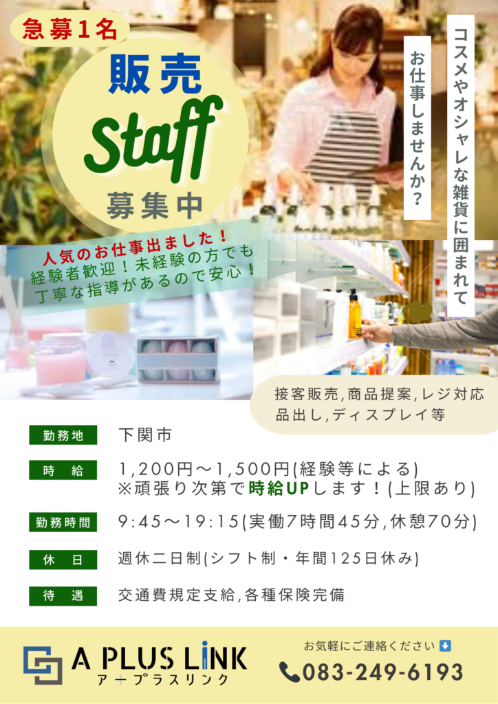 【急募】★ 販売スタッフ ★