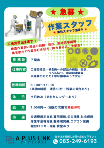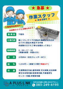 【急募】作業スタッフ ★正社員になれるチャンス★